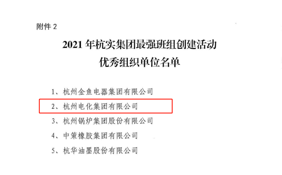 近日,在杭實(shí)集團(tuán)、杭州市工業(yè)工會聯(lián)合開展的,以“推進(jìn)班組安全建設(shè),提升班組安全能力”為主題的最強(qiáng)班組創(chuàng)建活動中,杭州電化集團(tuán)有限公司氯堿分公司氯裝置班組脫穎而出,榮獲“最強(qiáng)班組”榮譽(yù)稱號,集團(tuán)公司斬獲“優(yōu)秀組織單位”榮譽(yù)稱號。